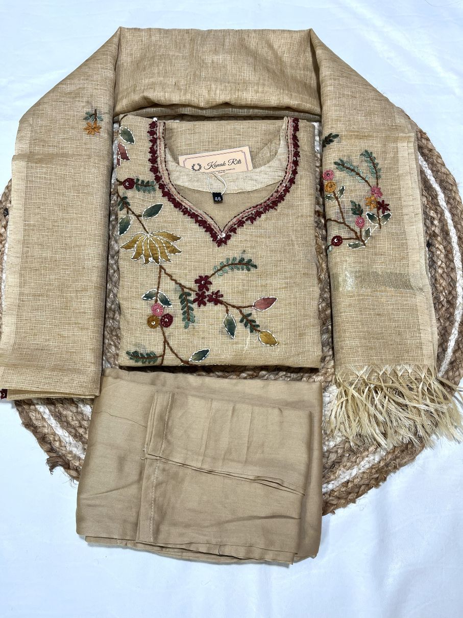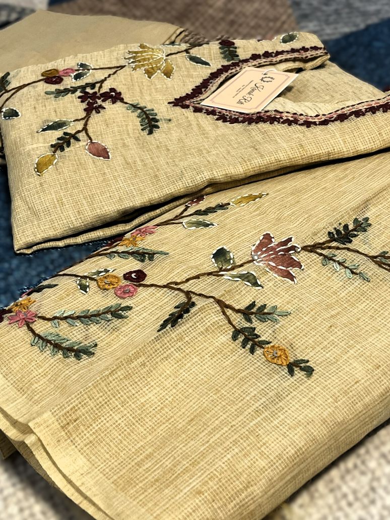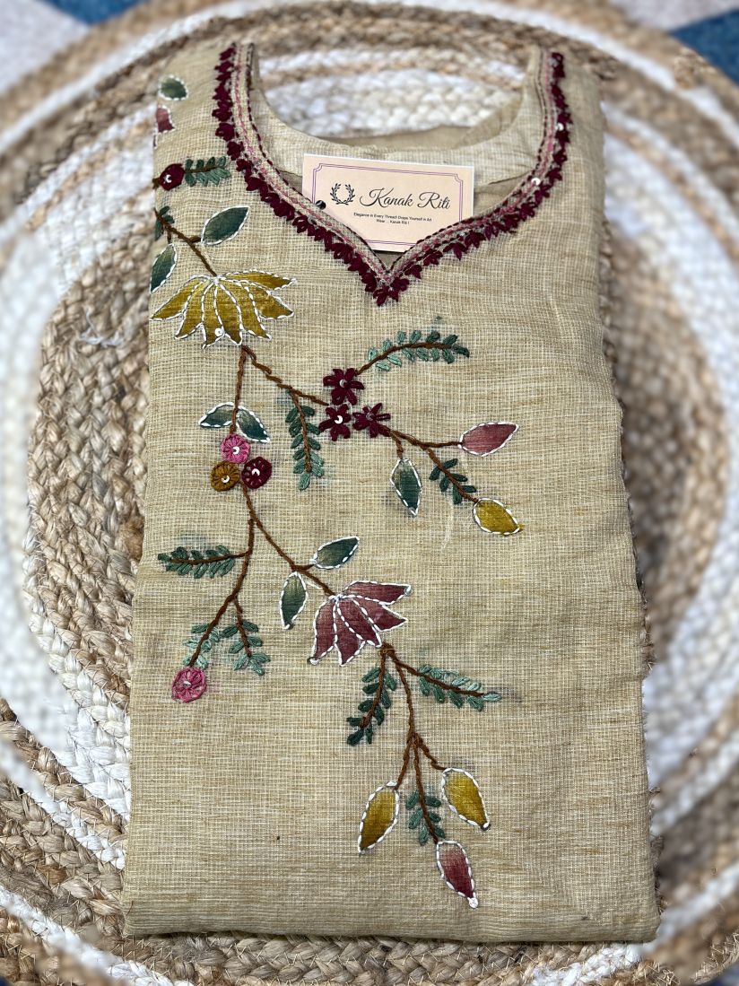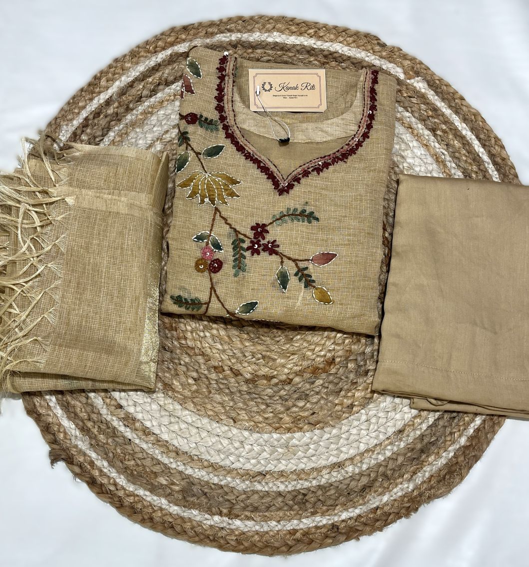 🌾 Fabric: Premium Kota Doria fabric with a soft beige-golden tone