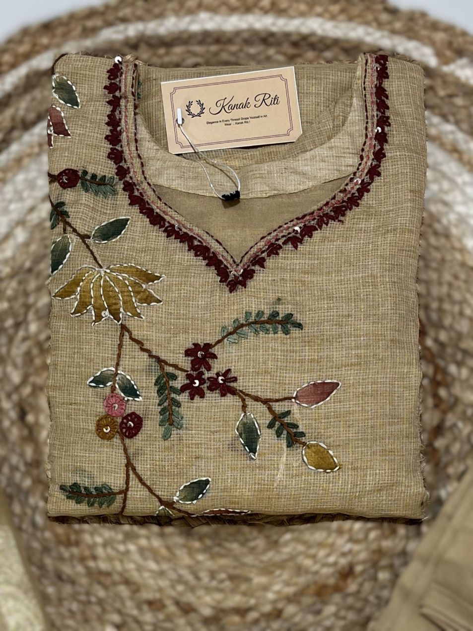 🌸 Design: Beautiful multi-colour floral hand paint and embroidery on kurti & dupatta