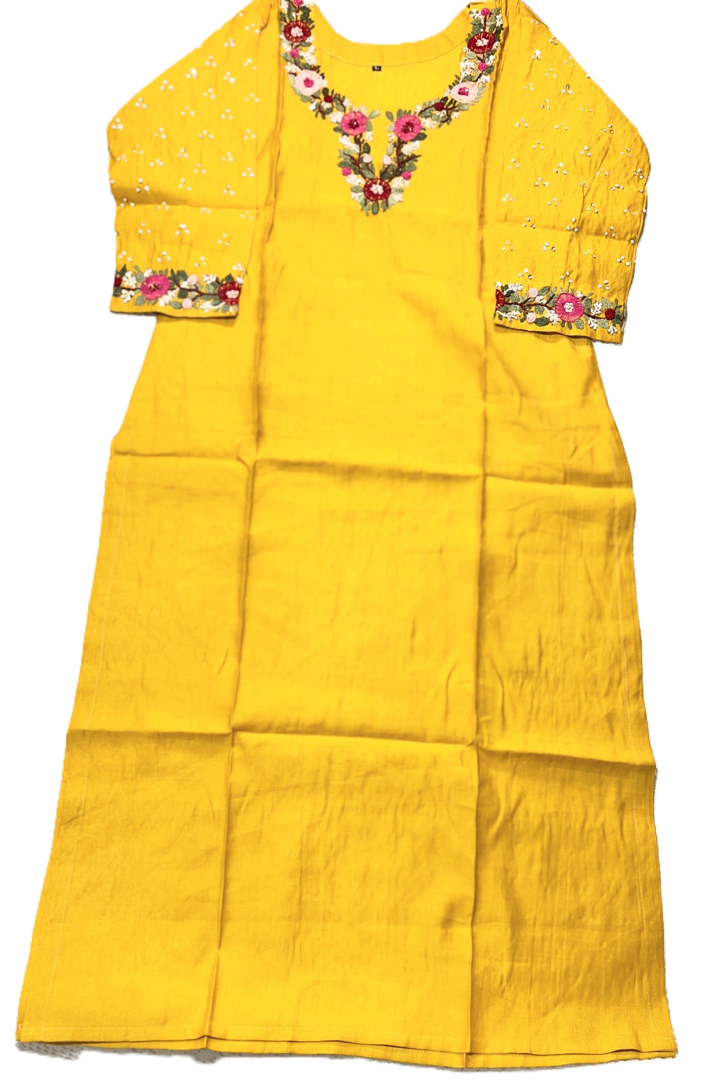 🌸 Neckline: Elegant round neck with embroidered detailing