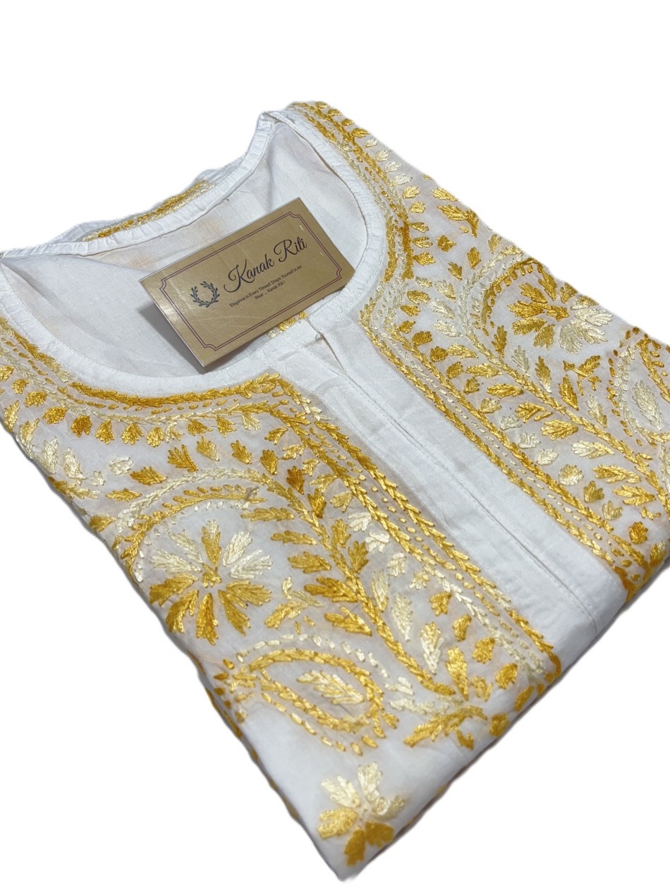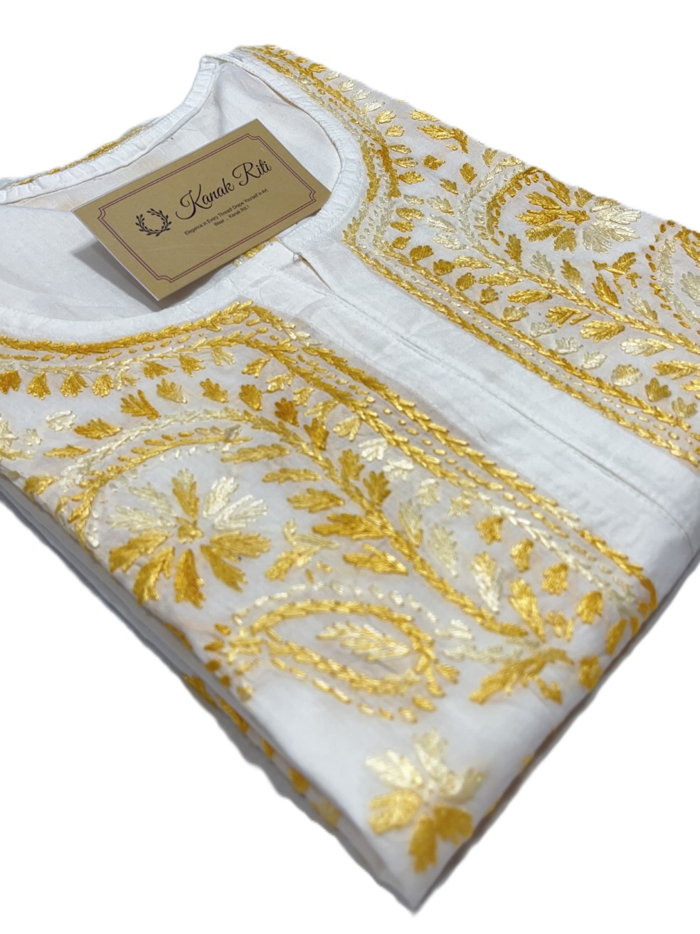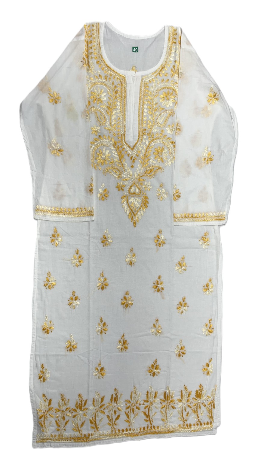 Elegant White Cotton Chikankari Kurti for Women – Sathi