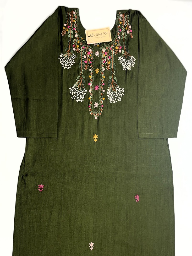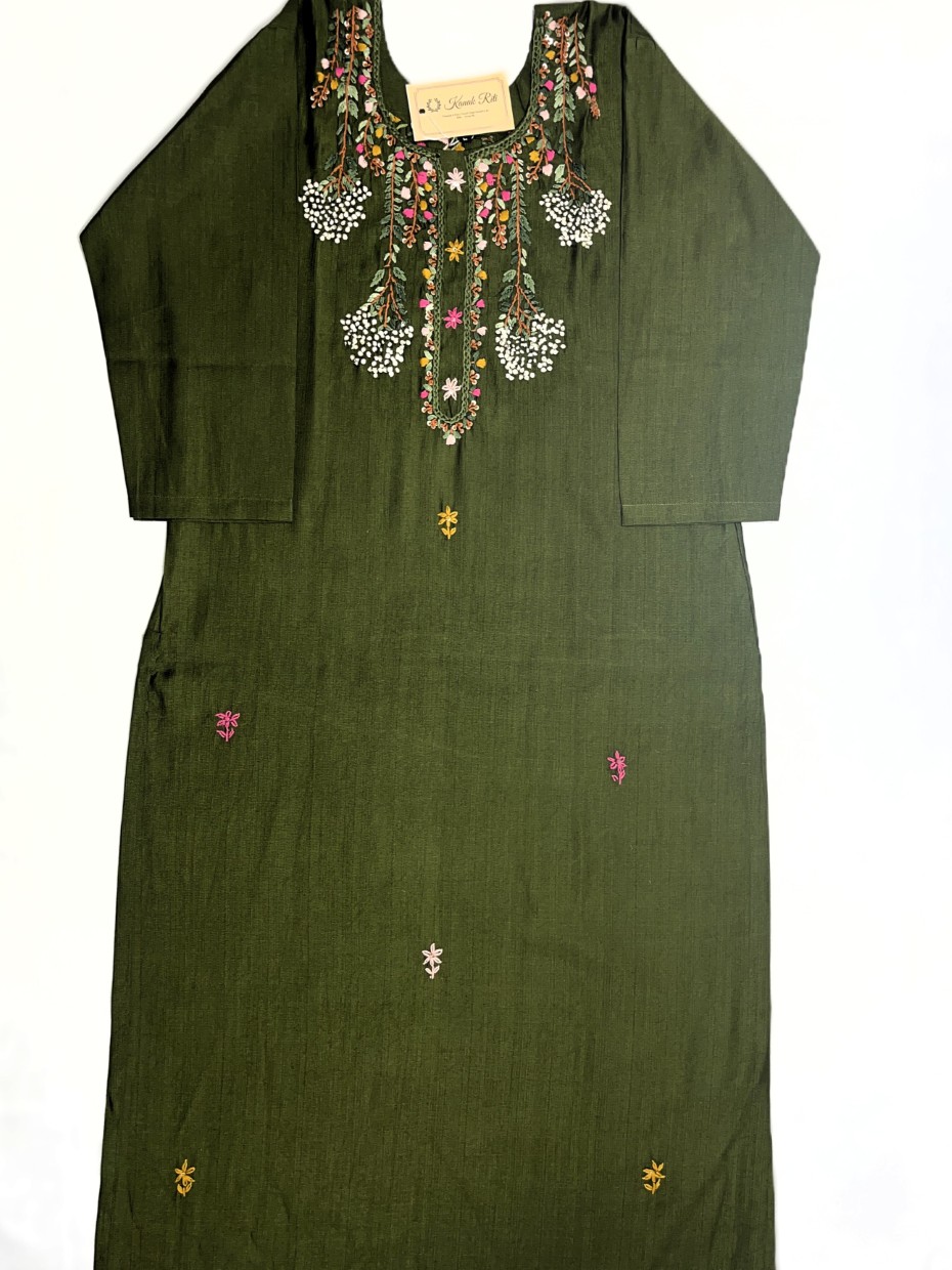 Green Cotton Kurti with Hand Embroidery – Samriddhi