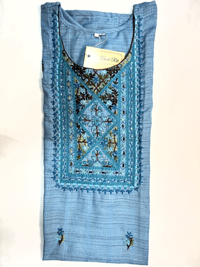✨ Neckline: Stylish round neck with detailed thread work border.