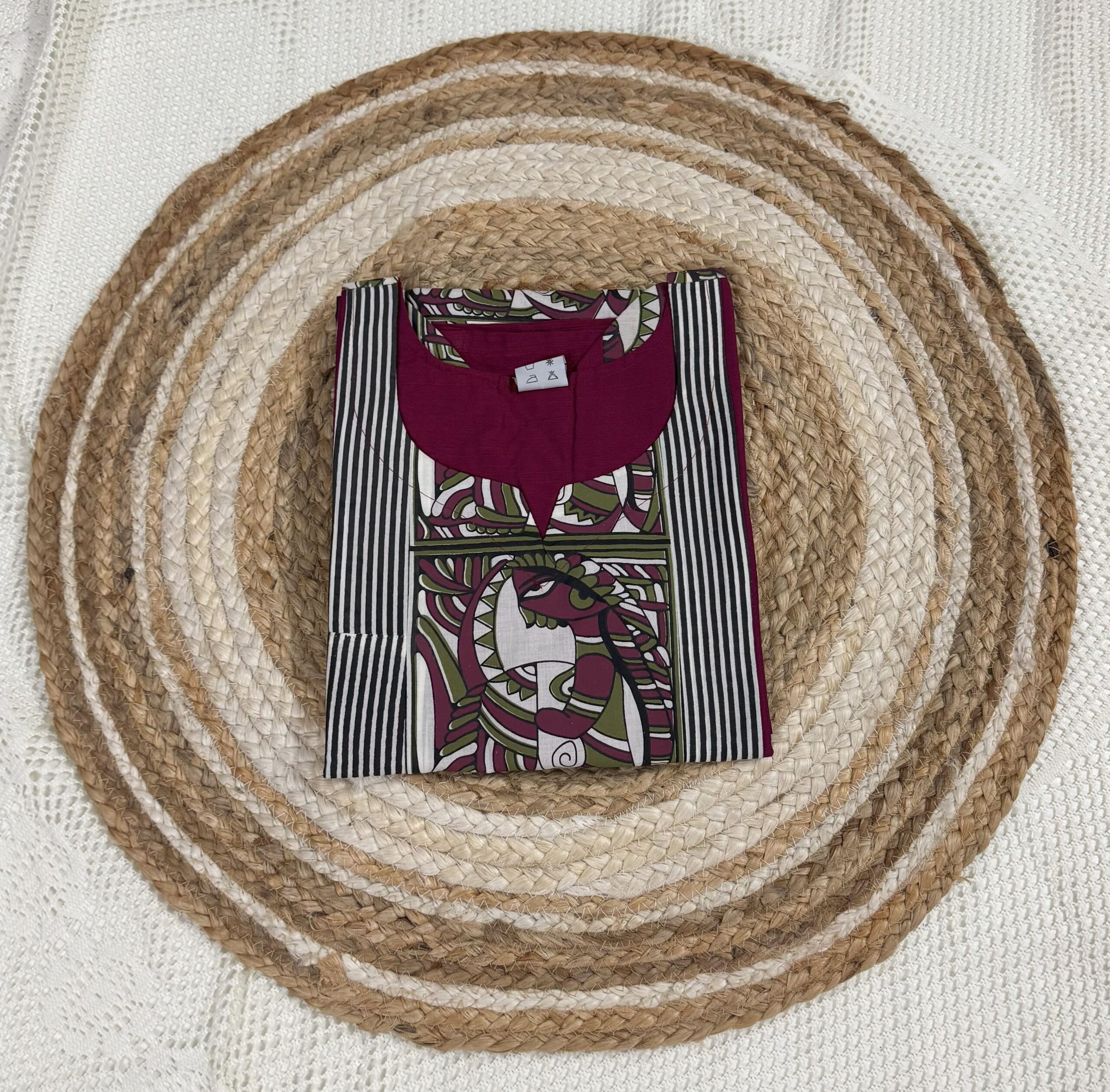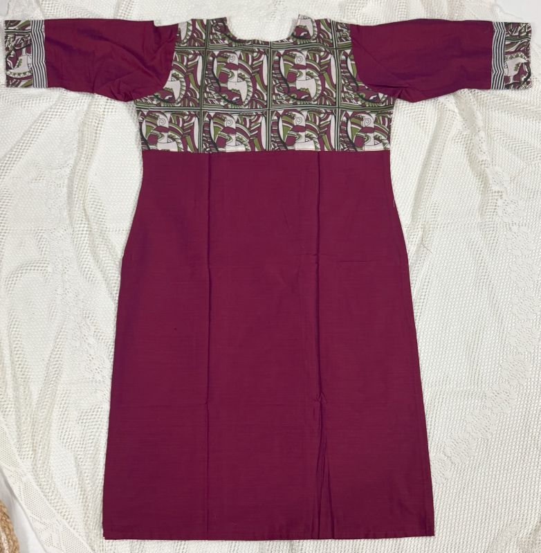 Elevate your ethnic wardrobe with this elegant maroon raw silk kurti, designed with intricate patch work detailing that adds a touch of charm and sophistication. Crafted from premium raw silk fabric, it offers a natural sheen and luxurious feel, making it perfect for festive occasions, family gatherings, or special celebrations.