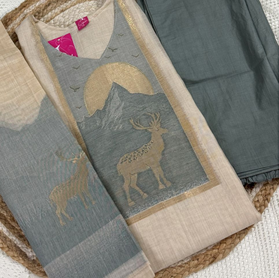✨ Fabric: Luxurious weaved tassar – soft, breathable, and lightweight