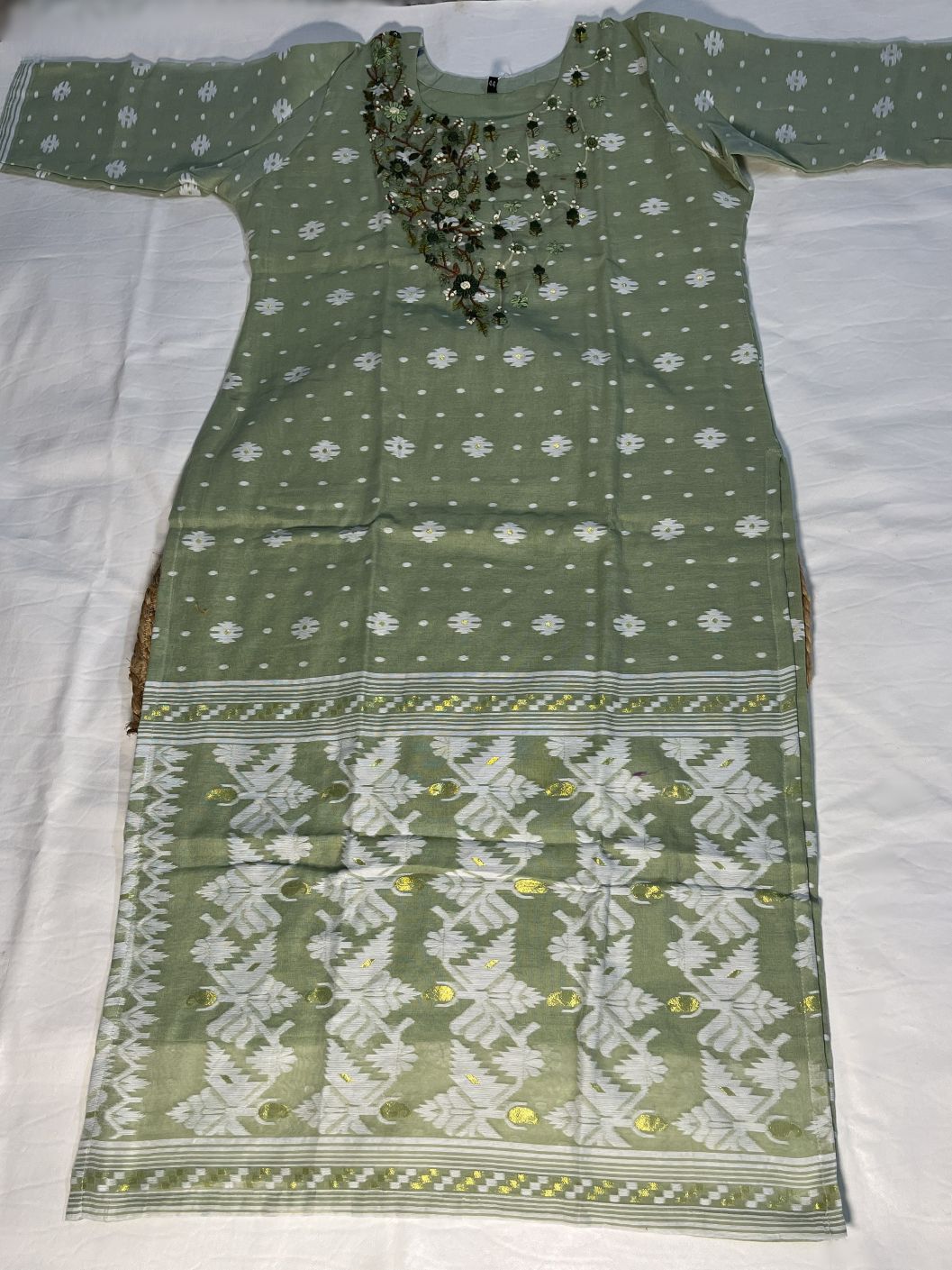 🪡 Traditional woven Jamdani motifs adding handcrafted charm