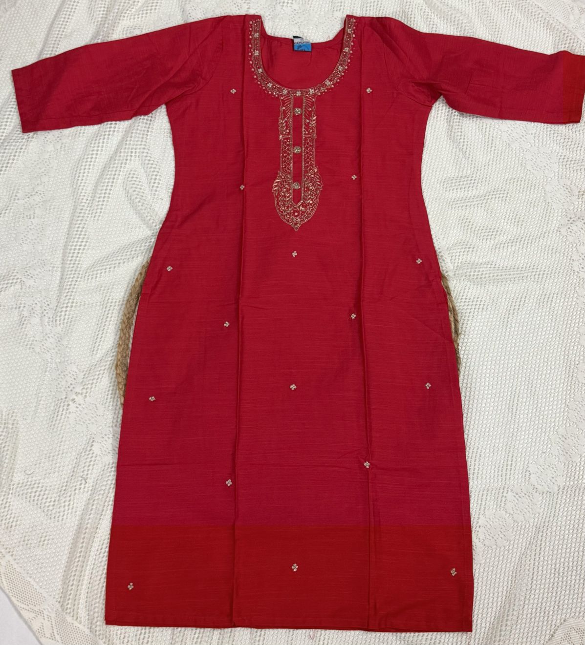 The bold red hue symbolizes celebration and grace, making it an ideal choice for festivals, weddings, parties, and cultural occasions. Lightweight yet rich in design, this kurti ensures both comfort and sophistication.